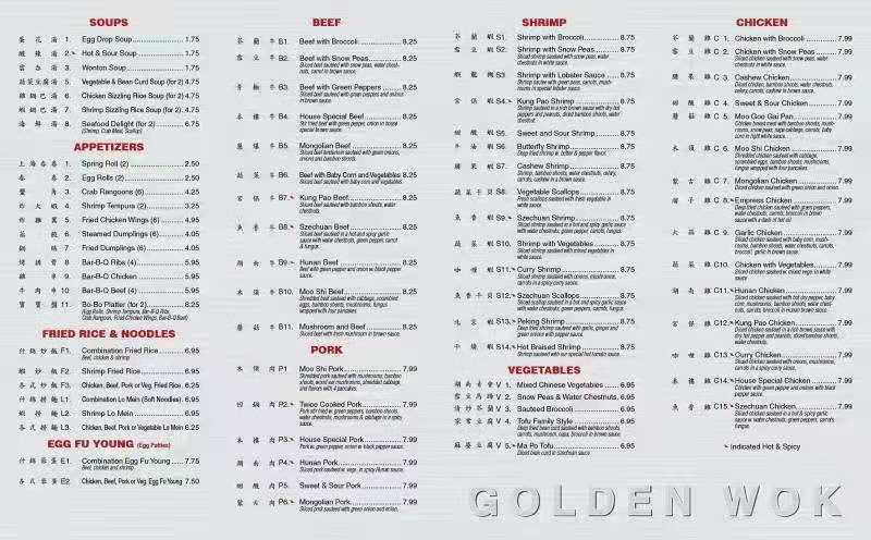 Overall, the menu at Golden Wok invites guests to enjoy a laid-back dining experience where variety and simplicity come together naturally, fitting well into everyday moments and shared meals with loved ones.